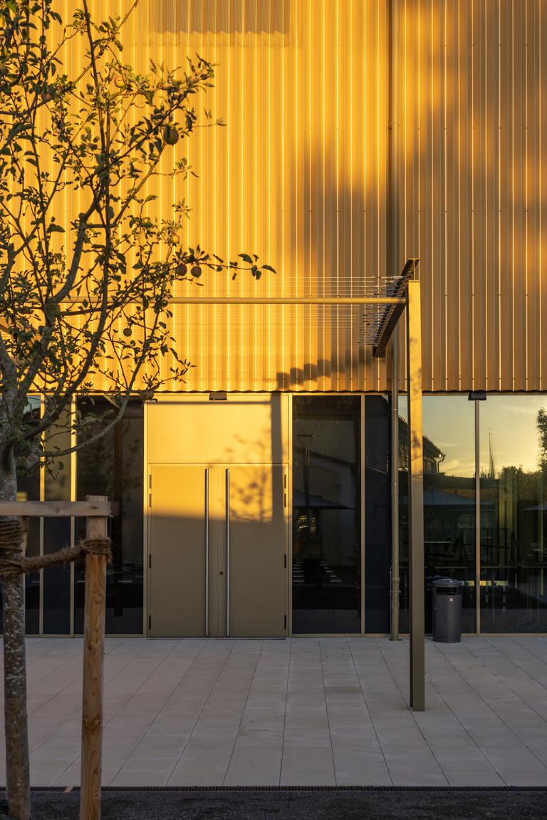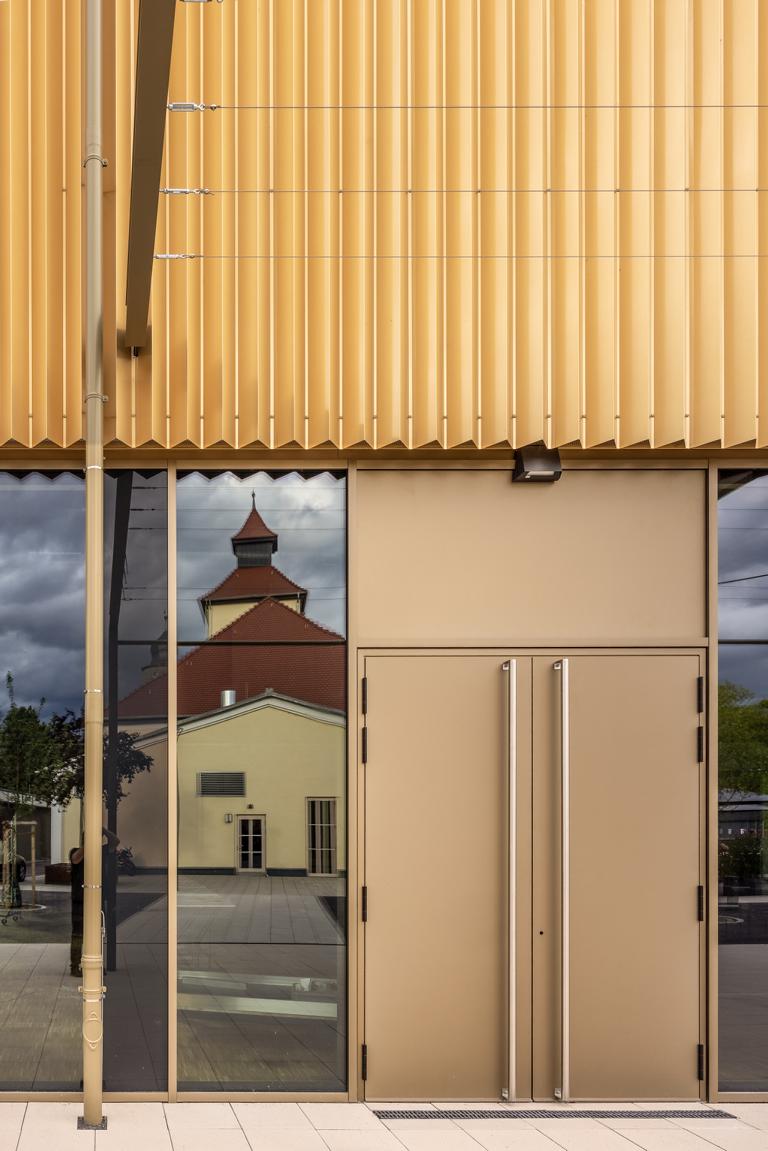 Das vorhandene Hauptgebäude (Alte BayWa) beherbergt ein Restaurant mit Vinothek (Restaurant Flockenwerk).