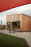 Gestaltet sind die Fassaden der Gebäudemodule mit einer senkrechten unbehandelten Lärchenverschalung. Beim Flachbau kam eine Fassadenplatte zur Ausführung.