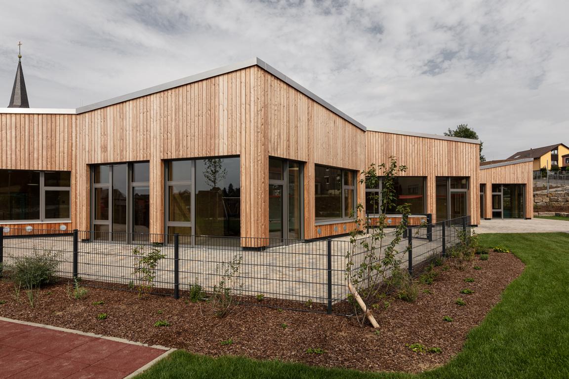 Neubau eines modularen 5-gruppigen Holzkindergartens in Waldbrunn.
